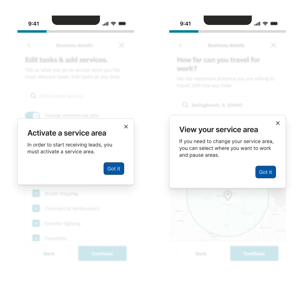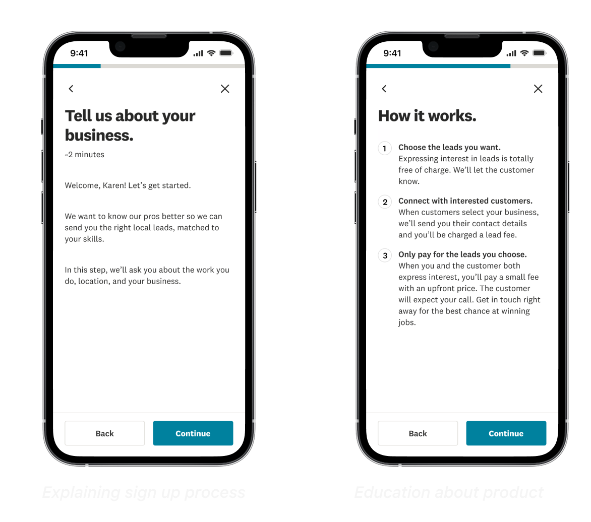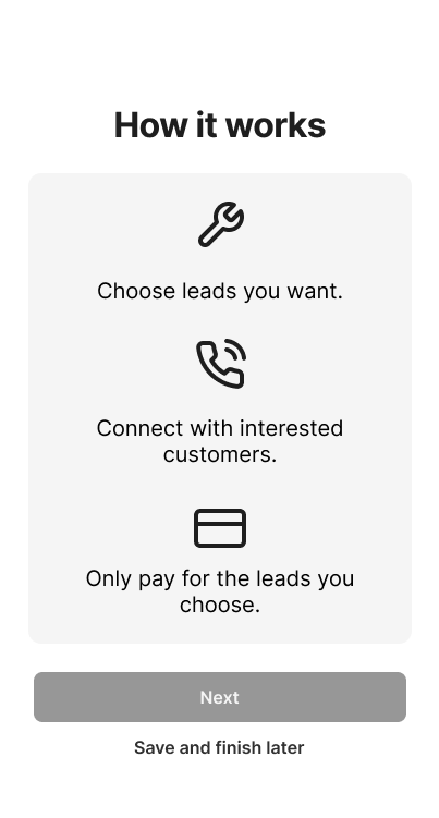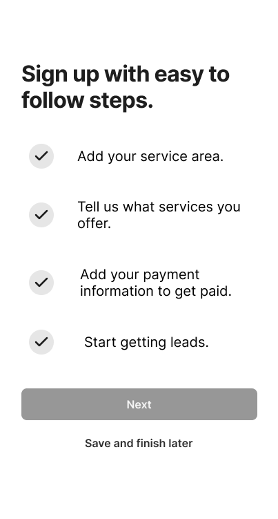 Design a comprehensive, self-service sign-up flow that guides users through the essential steps to start receiving leads.