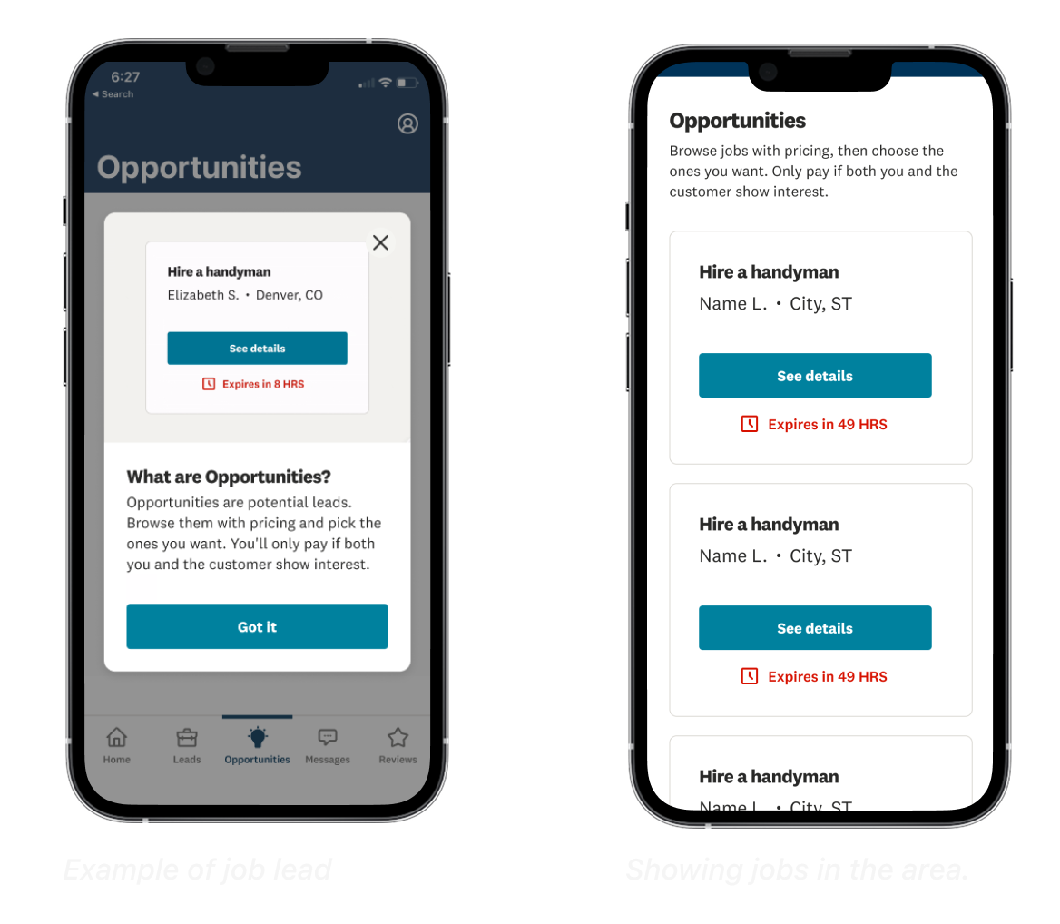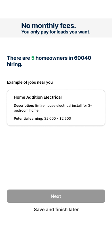 We connect homeowners with service professionals. Pros sign up to receive paid job leads and control their preferences—service areas, job types, and lead spending limits.