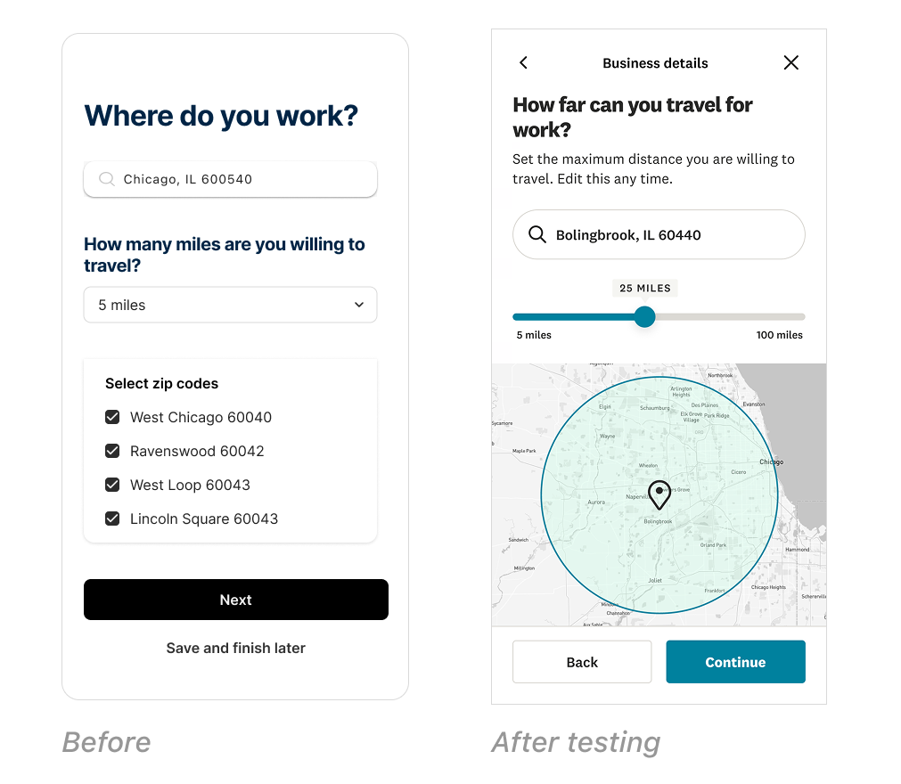 Changes that were made based on feedback was the order of onboarding steps, and a preference for including a visual of the map.